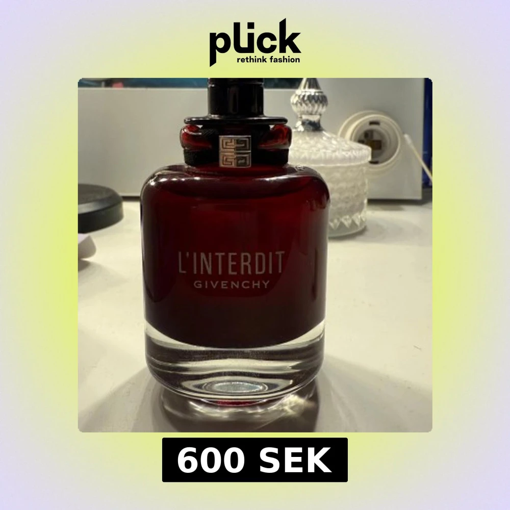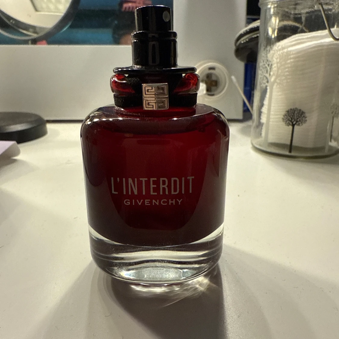 Givenchy L’Interdit Rouge – 50 ml EdP Originalparfym, köpt i butik. Endast använd ett fåtal gånger – ca 90 % kvar (se bild). Batchkod: 4C01 (mars 2024) – syns på bild för äkthetsverifiering. Saknar lock, men flaskan och sprayen fungerar perfekt. 💰 Nypris ca 1 300 kr – jag säljer för 600 kr