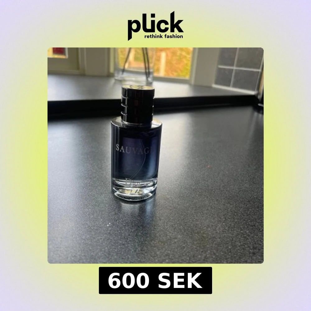 Säljer en flaska Sauvage Eau de Toilette från Dior. Parfymen kommer i en elegant mörkblå glasflaska med svart lock och silverdetaljer. Doften är fräsch och maskulin, perfekt för dig som vill sticka ut med en modern och tidlös signatur. 60 ml rymmer flaskan