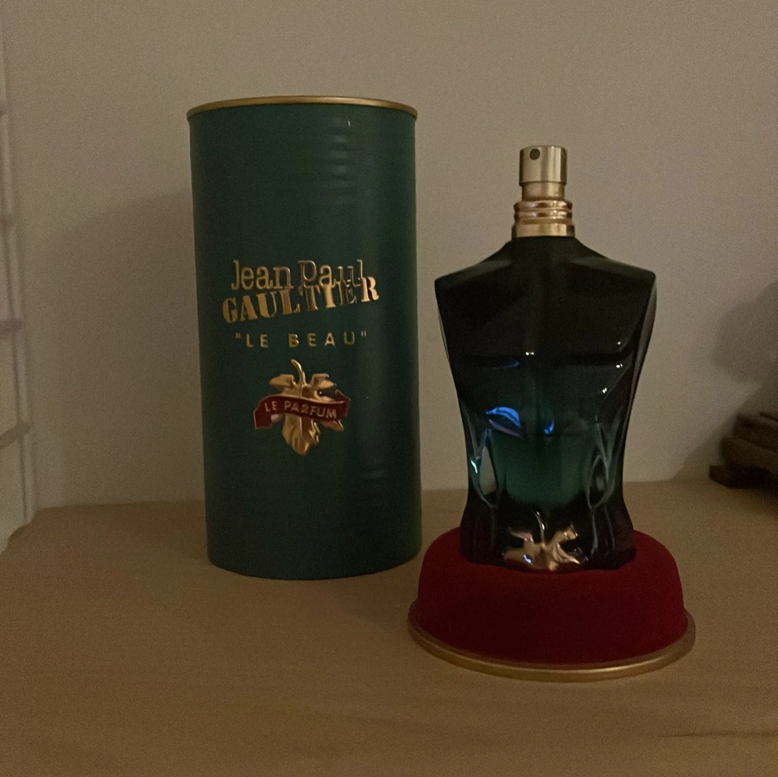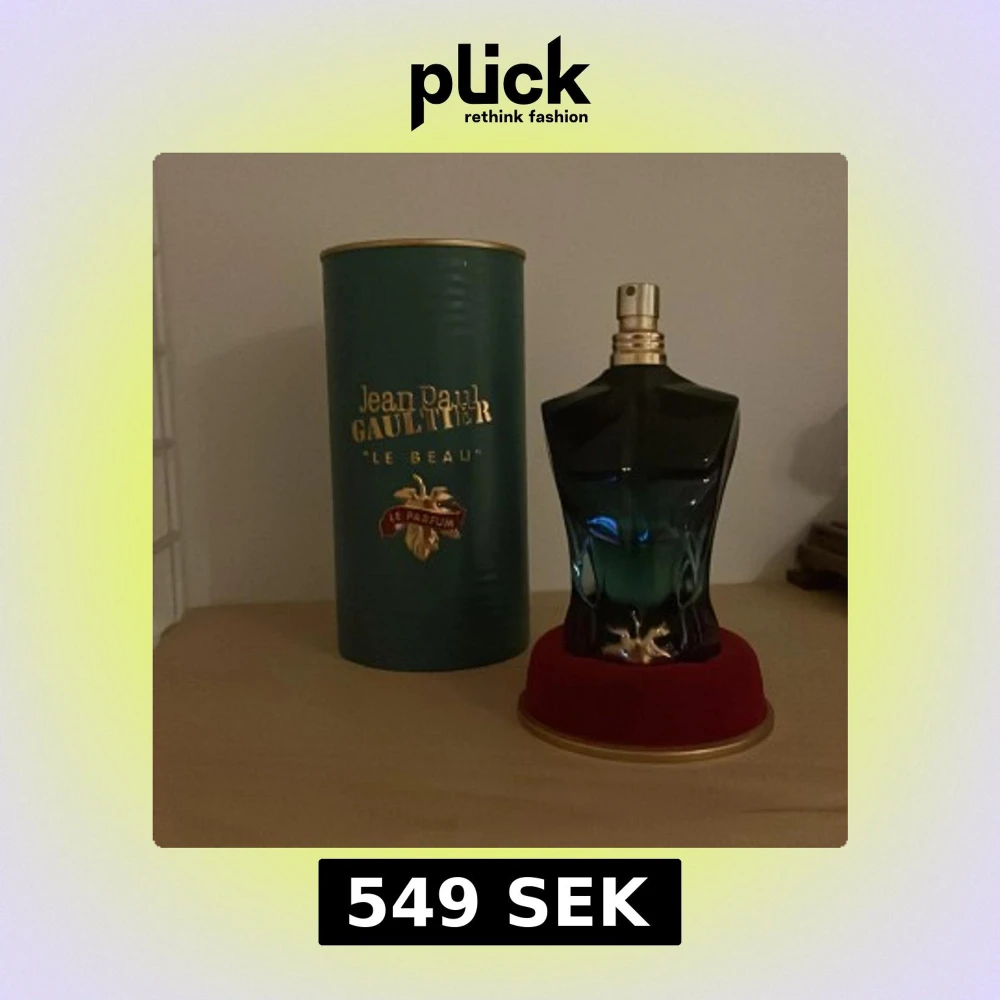 Jean Paul Gaultier Le Beau Le Parfum i 75ml flaska. Flaskan har en cool kroppsliknande form i mörkgrönt och transparent glas med gulddetaljer. Kommer med original grön och guldig förpackning. En ikonisk och stilren herrdoft. Se bild 4 för att se hur mycket det är kvar