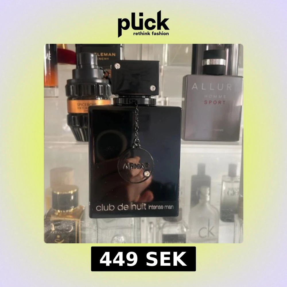 Snygg och elegant svart flaska med en kedja och en rund medaljong. Parfymen Club de Nuit Intense Man från Armaf har en maskulin doftprofil. Flaskan har en stilren design med en fyrkantig form och en dekorativ kork. Använd kanske 5-10 ml🤩😀🤩