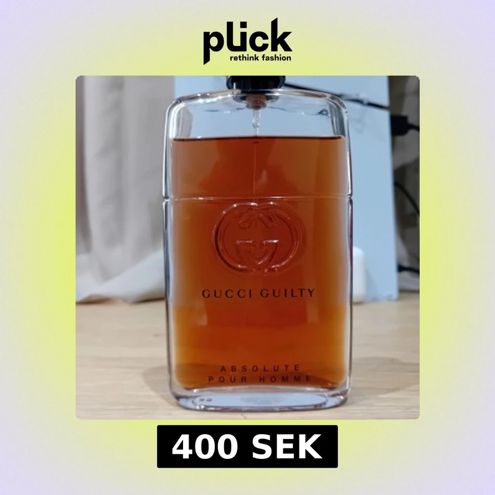 Gucci Guilty Absolute Pour Homme är en herrparfym med en djup bärnstensfärgad vätska i en stilren, genomskinlig glasflaska med präglad logotyp. Flaskan rymmer 90 ml Eau de Parfum och har en modern, maskulin design.