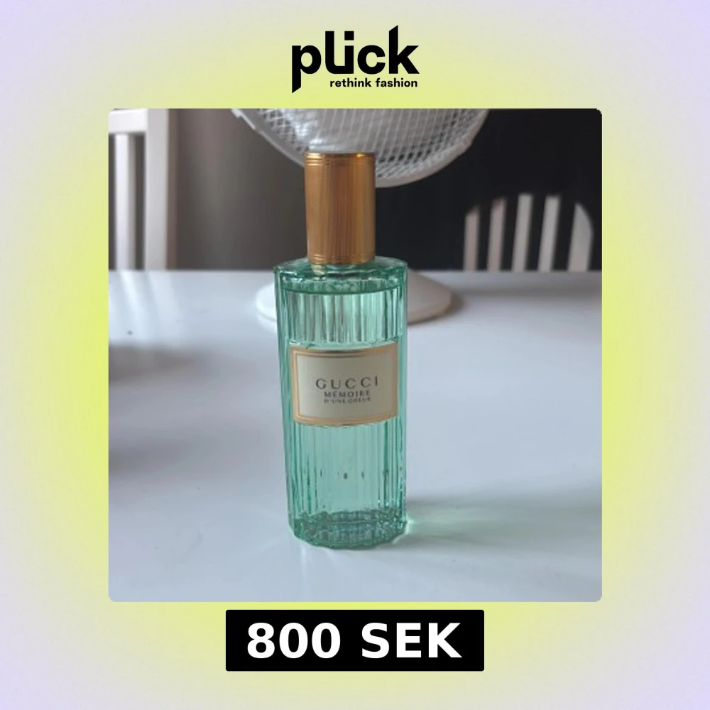 Gucci Mémoire d'une Odeur parfym 100 ml i en stilren, räfflad glasflaska med ljusgrön ton och elegant guldfärgad kork. Den är lite använd. Den doftar jättegott men passar inte mig.