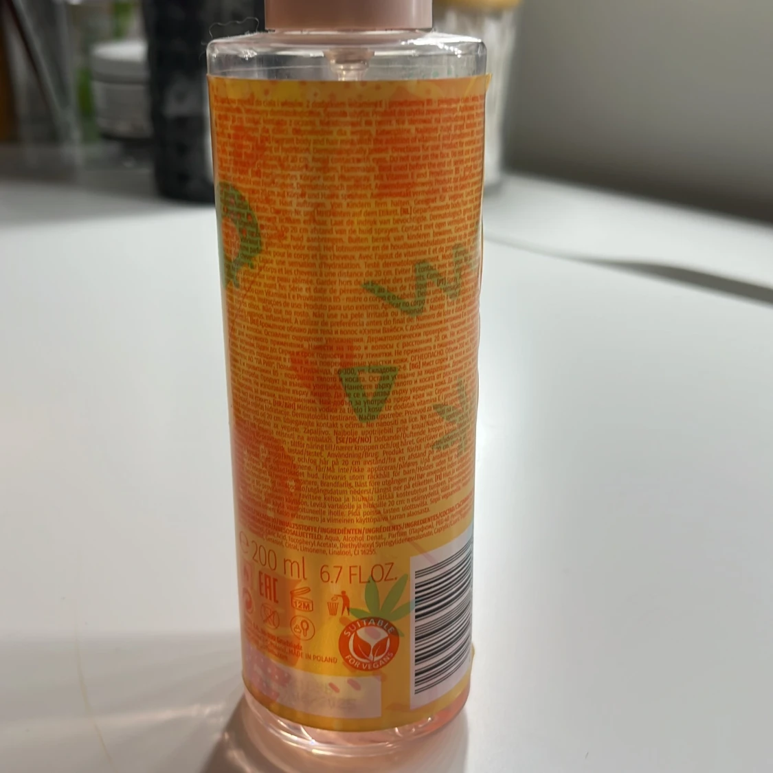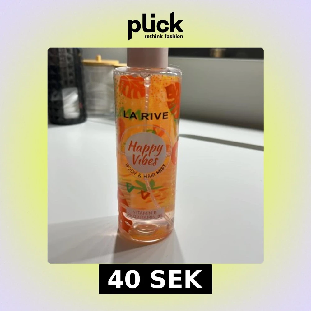 Fräsch body & hair mist från La rive som luktar mango. Innehåller vitamin E och provitamin B5 för extra vård. Perfekt för att ge en uppfriskande doft till både kropp och hår. Ungefär halva är använd och säljer för att den in tre kommer till användning. Jag har tappar bort korket så de kommer inte med.