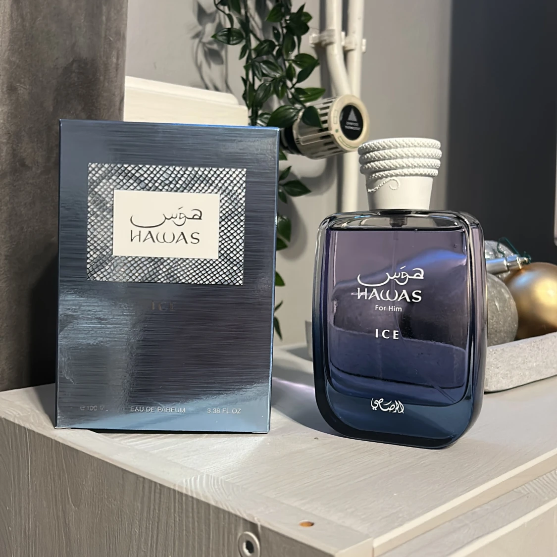 Säljer en elegant flaska av Hawas Ice Eau de Parfum för herrar. Flaskan har en stilren design i blått glas med en vit kork. Doften är fräsch och modern, perfekt för den som vill sticka ut. Kommer i en snygg förpackning som matchar flaskans design. Bara testsprayad. 100ml