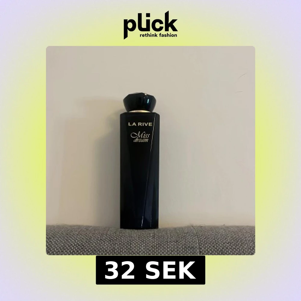Elegant parfymflaska från La Rive med namnet Miss Dream. Flaskan är mörkblå och har en stilren, avlång design med en svart, facetterad kork. Perfekt för den som söker en sofistikerad doftupplevelse.
