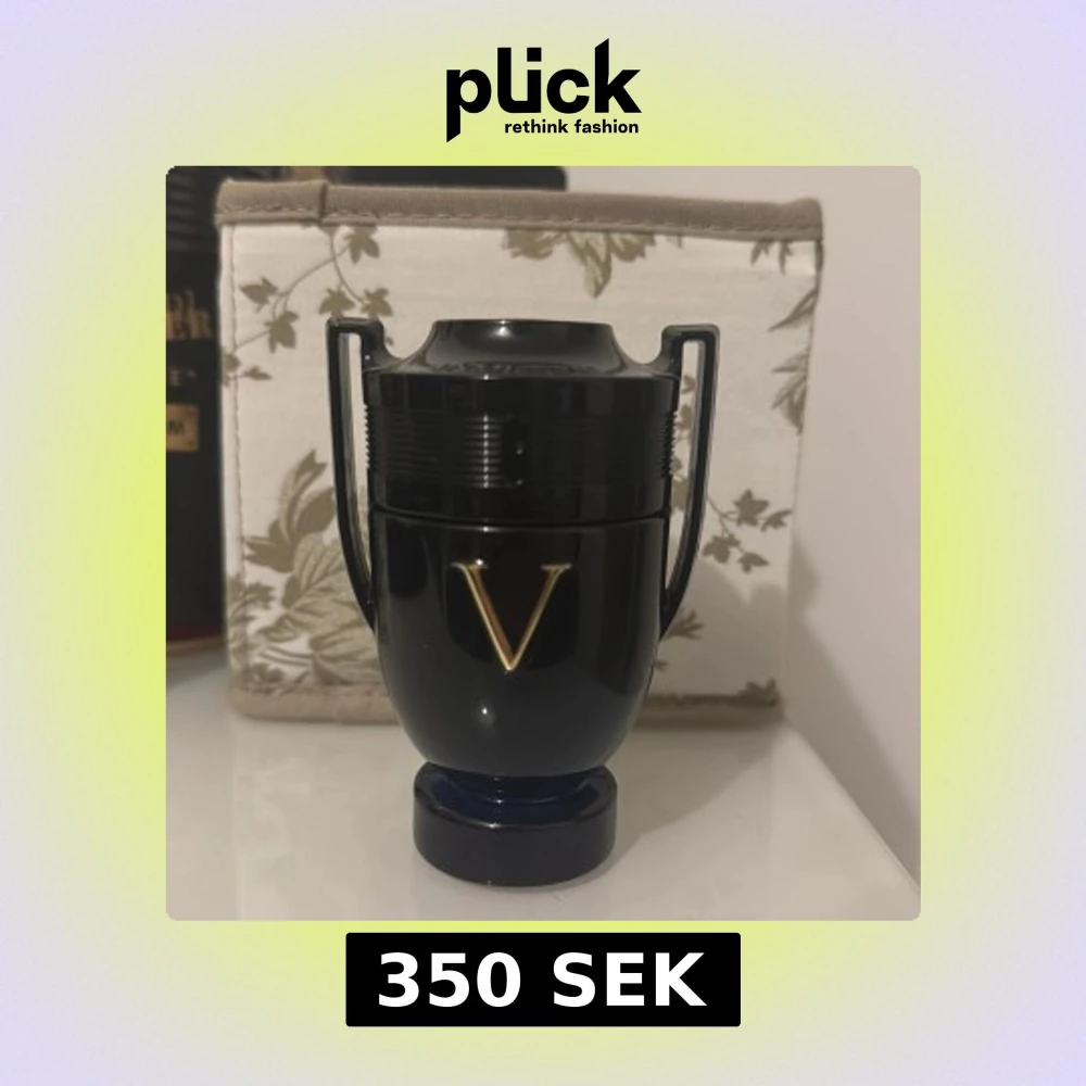 Elegant 50ml parfymflaska i form av en mörkblå trofé med ett gyllene 'V' på framsidan. Flaskan innehåller 40ml kvar. Flaskan har två handtag och en rund bas, vilket ger den ett unikt och stilrent utseende. Perfekt för den som vill ha en iögonfallande detalj på parfymhyllan.