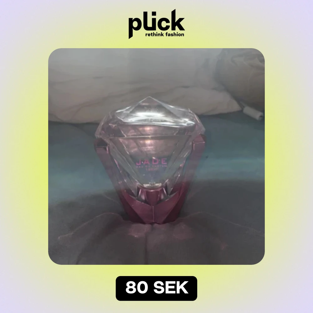 Säljer en superfin parfym från Jade. Flaskan är formad som en diamant och har en cool rosa och genomskinlig design. Den rymmer 100 ml och är perfekt för alla tillfällen. Doften är fräsch och elegant, perfekt för både vardag och fest. Flaskan är i plast och glas, vilket gör den både hållbar och snygg. Använt ett fåtal gånger. Står för frakten! Köp den nu och dofta fantastiskt! 💖