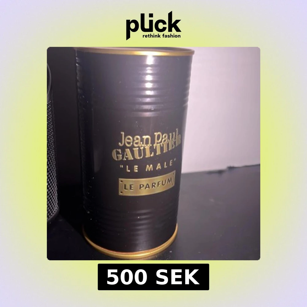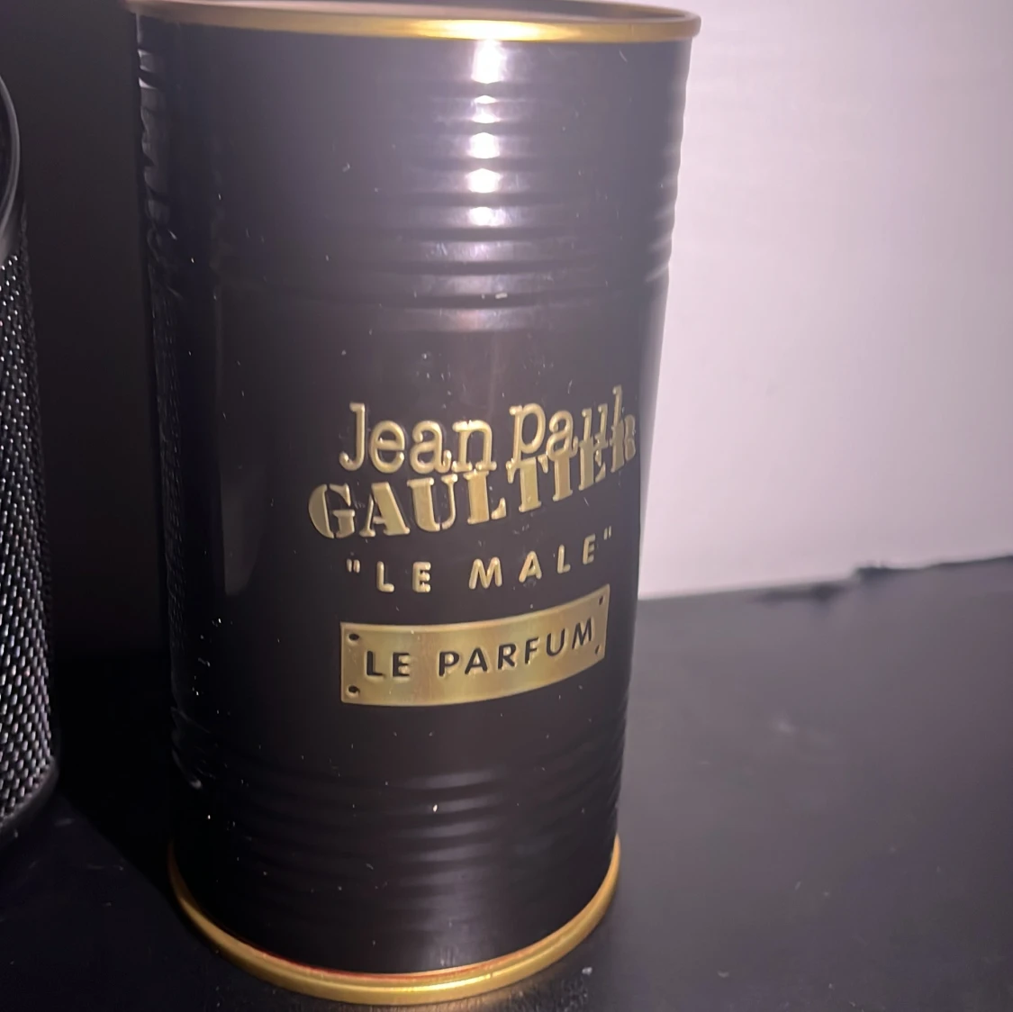 Snygg parfym i svart och guld metallburk från Jean Paul Gaultier, Le Male Le Parfum. Lyxig och maskulin design med tydliga guldiga detaljer och text. Perfekt för dig som gillar exklusiva dofter och stilren förpackning.