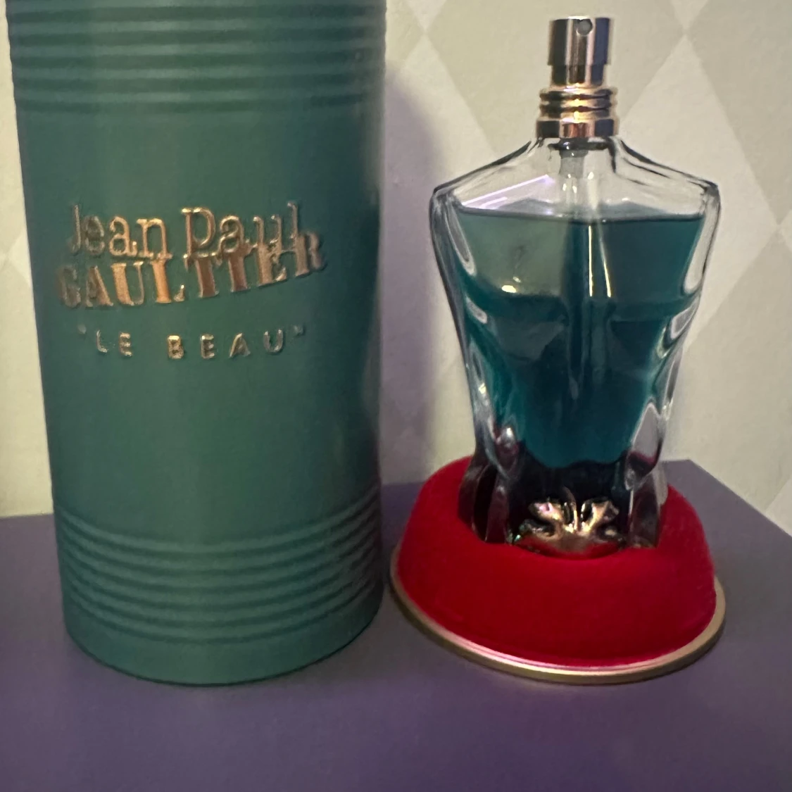 Jean Paul Gaultier Le Beau EdT med unik flaska och fräsch blågrön vätska. Volym: 75 ml. Perfekt för hösten, sommarn och våren. Det är en ganska fräsch doft med noter av kokosnöt 🥥 och vanilj🍦. Flaskan är helt nyköpt (kvitto finns), ungefär 73-74 ml kvar. HELST ETT BYTE MEN KAN OCKSÅ SÄLJA