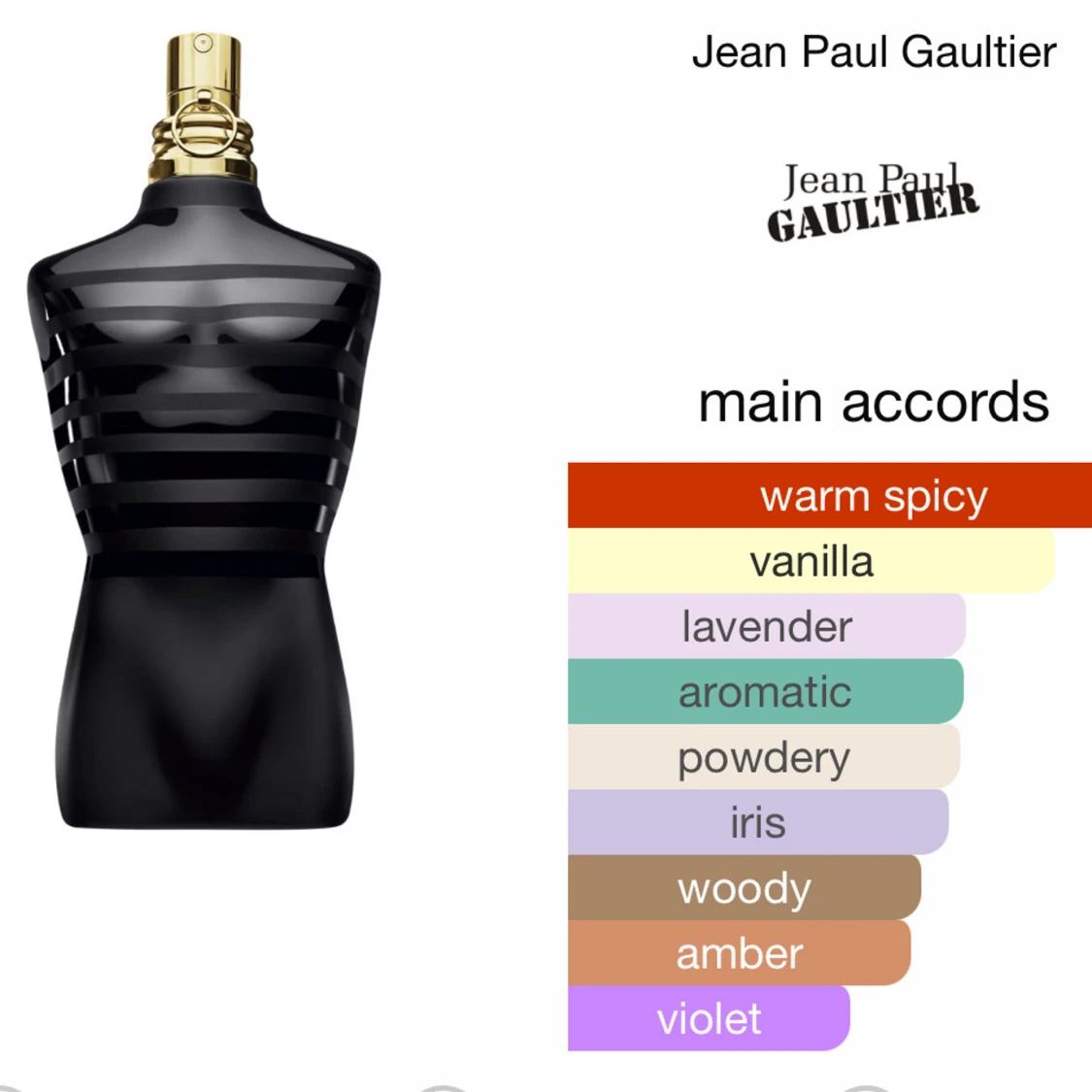 Jean Paul Gaultier le male le parfum 5ml sample. Det är en doft som har varma kryddiga noter med inslag av vanilj, lavendel och träiga noter. Parfymen är en Eau de Parfum Intense, vilket gör att den håller ca: 10-12 timmar på huden. Den passar bäst på vintern och hösten, när det är lite kallare väder. Men den sitter lika fint om man ska ut med någon. [2ml för 25] [5ml 55] [10ml för 105] nypris 75ml: 780kr