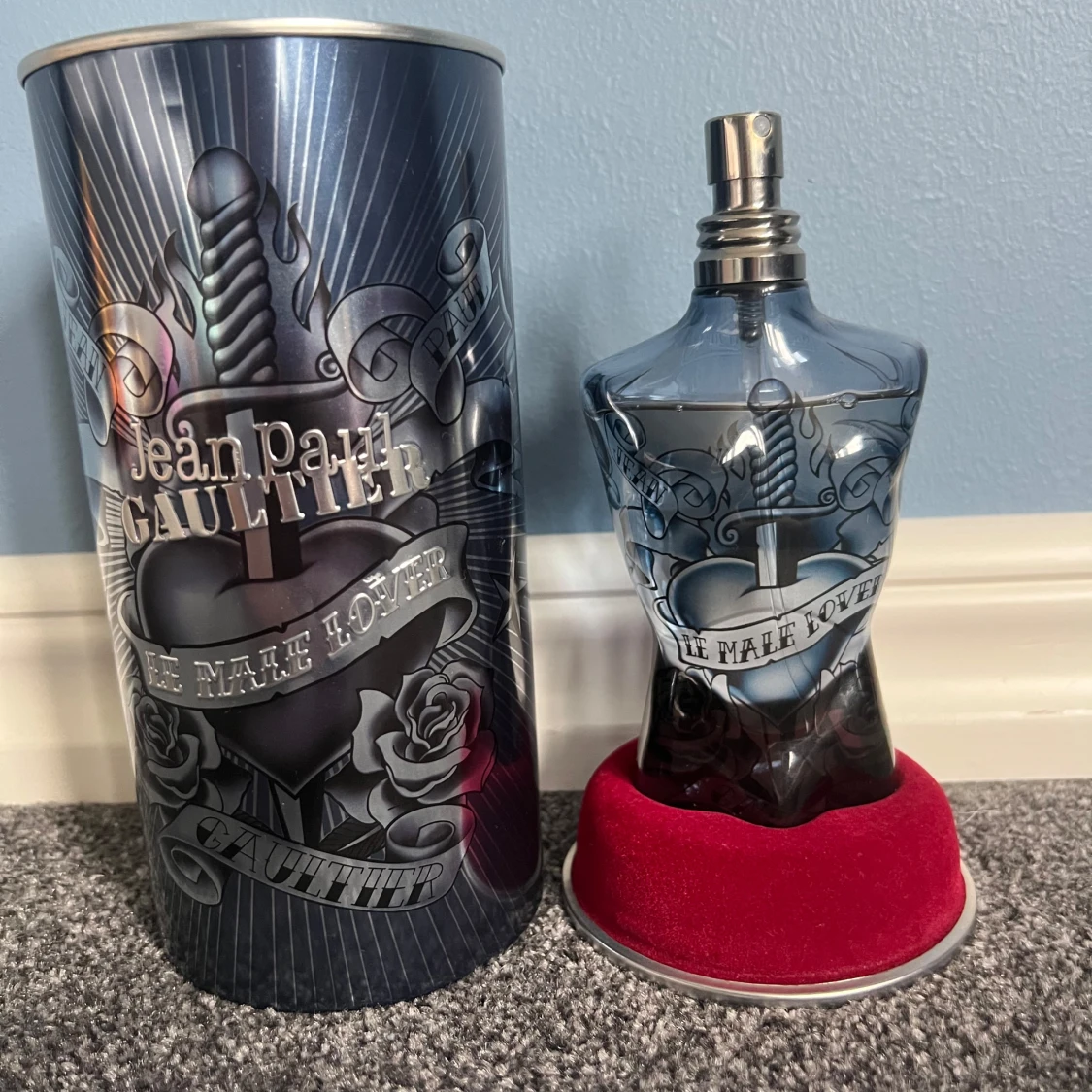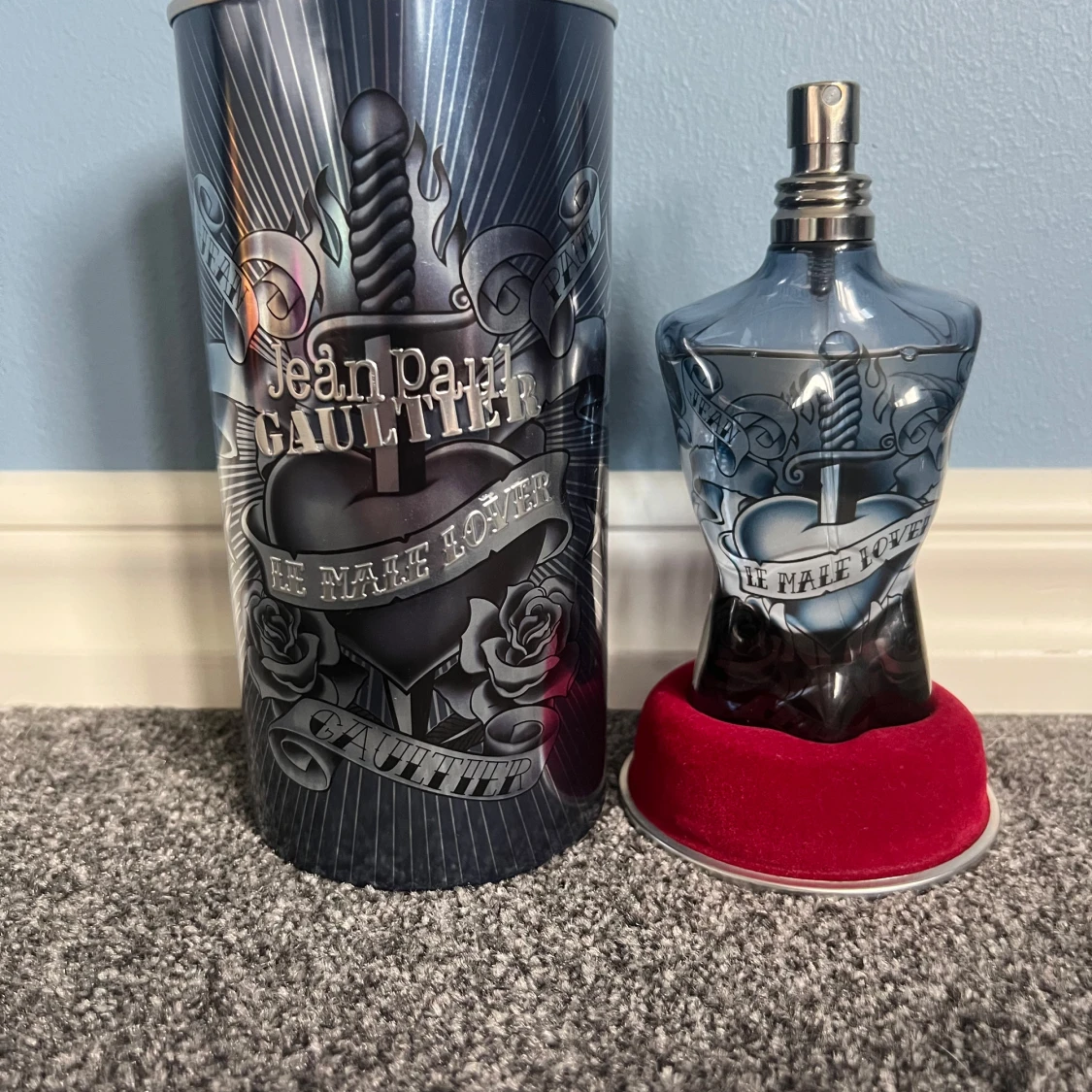 Limited edition Le Male Lover med coolt tatuerat hjärta och rosor på flaskan. Perfekt för dig som vill sticka ut med en unik design från Jean Paul Gaultier. Snygg presentförpackning med edgy vibe.