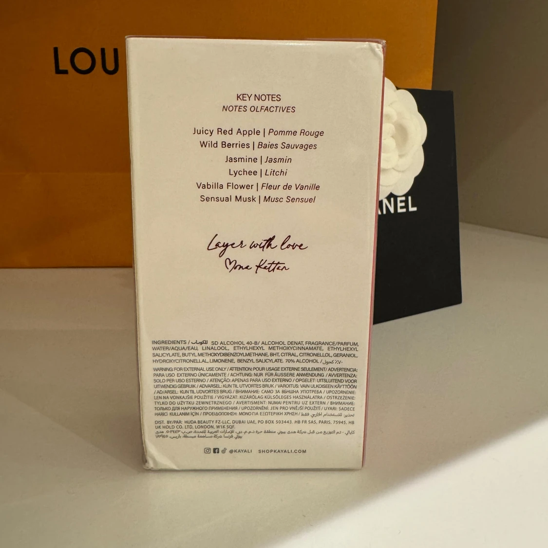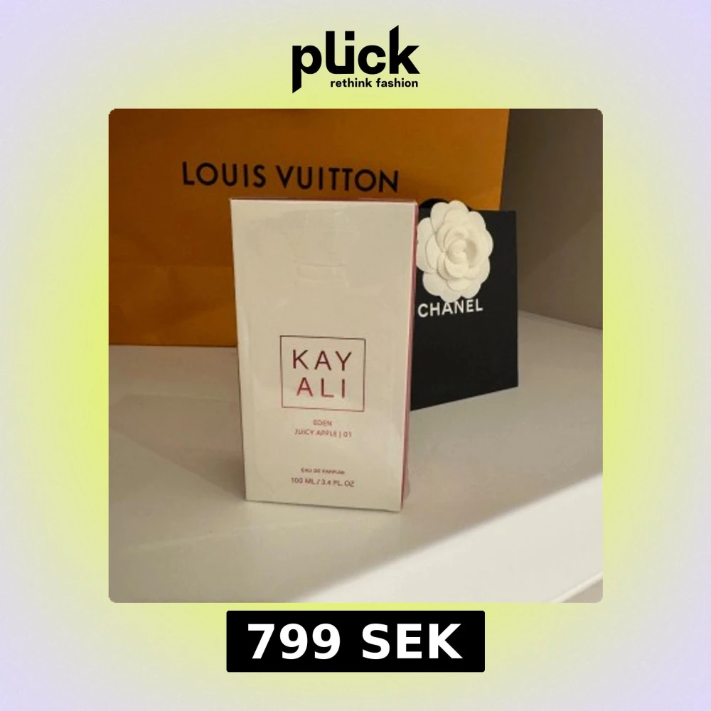 Kayali Eden Juicy Apple | 01, 100 ml Eau de Parfum. Nyckelnoter: saftigt rött äpple, vilda bär, jasmin, litchi, vaniljblomma och sensuell mysk. Ingredienser och detaljer synliga på förpackningen. Tillverkad i Frankrike. Oöppnad. Köpt i London