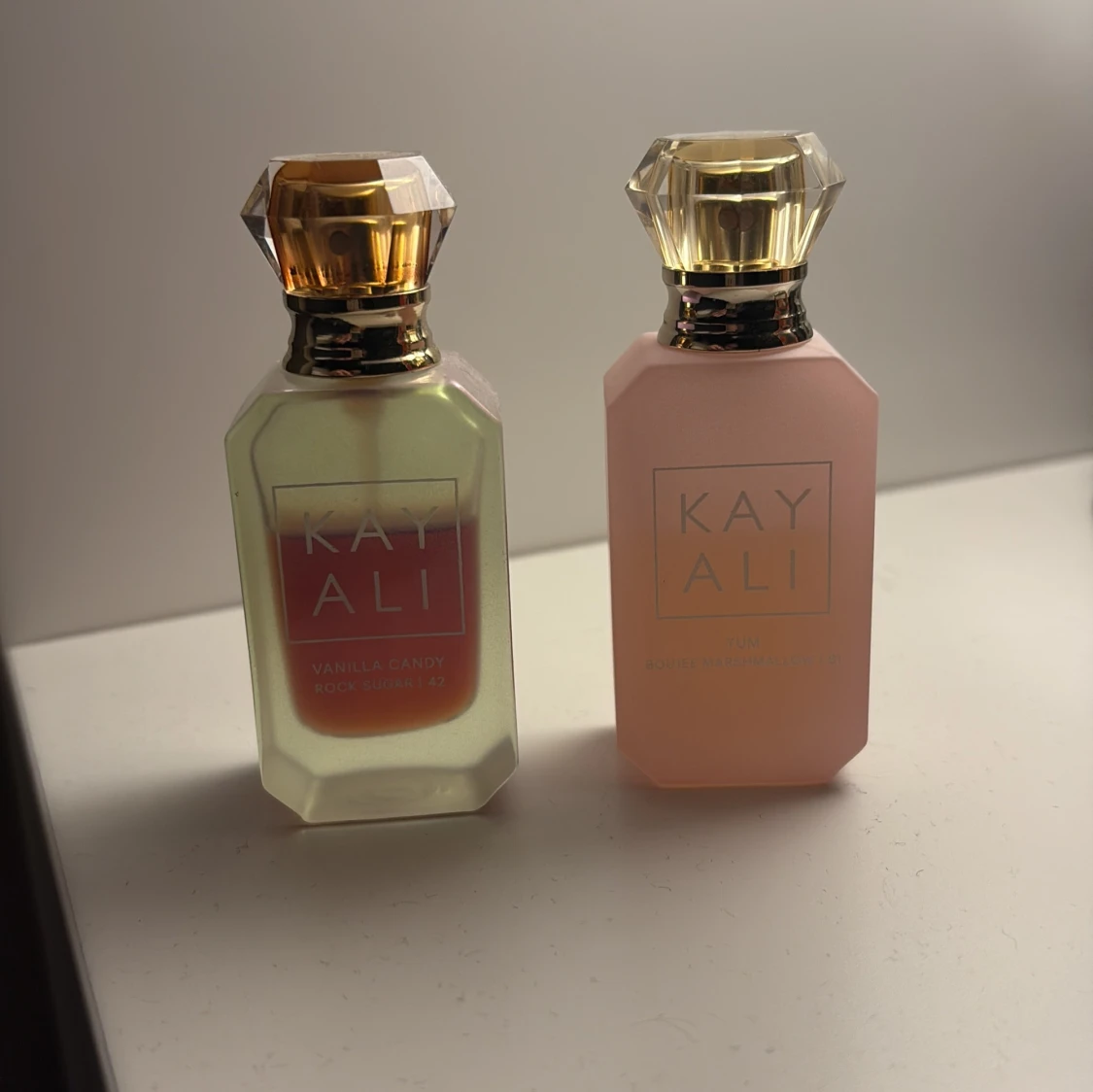 Två trendiga Kayali parfymer, båda har lite mer än hälften kvar. Perfekta för dig som vill sticka ut med snygga flaskor och populära dofter. Säljer båda för 300kr!