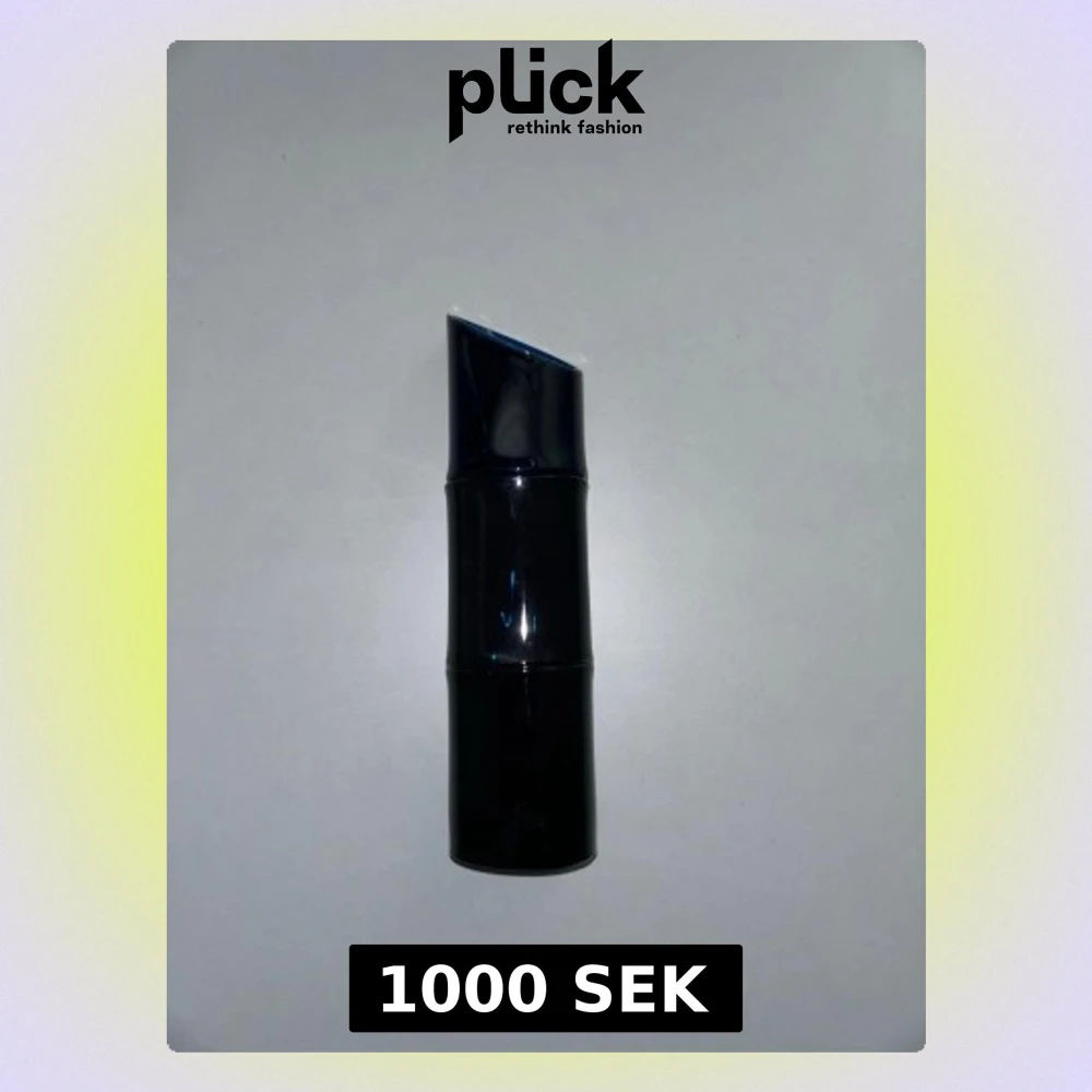 Snygg parfymflaska i svart plast med en cool, bambuliknande form och snedskuren topp. Flaskan har en modern och stilren design som sticker ut i badrumshyllan. Perfekt för dig som gillar minimalistiska och unika detaljer.