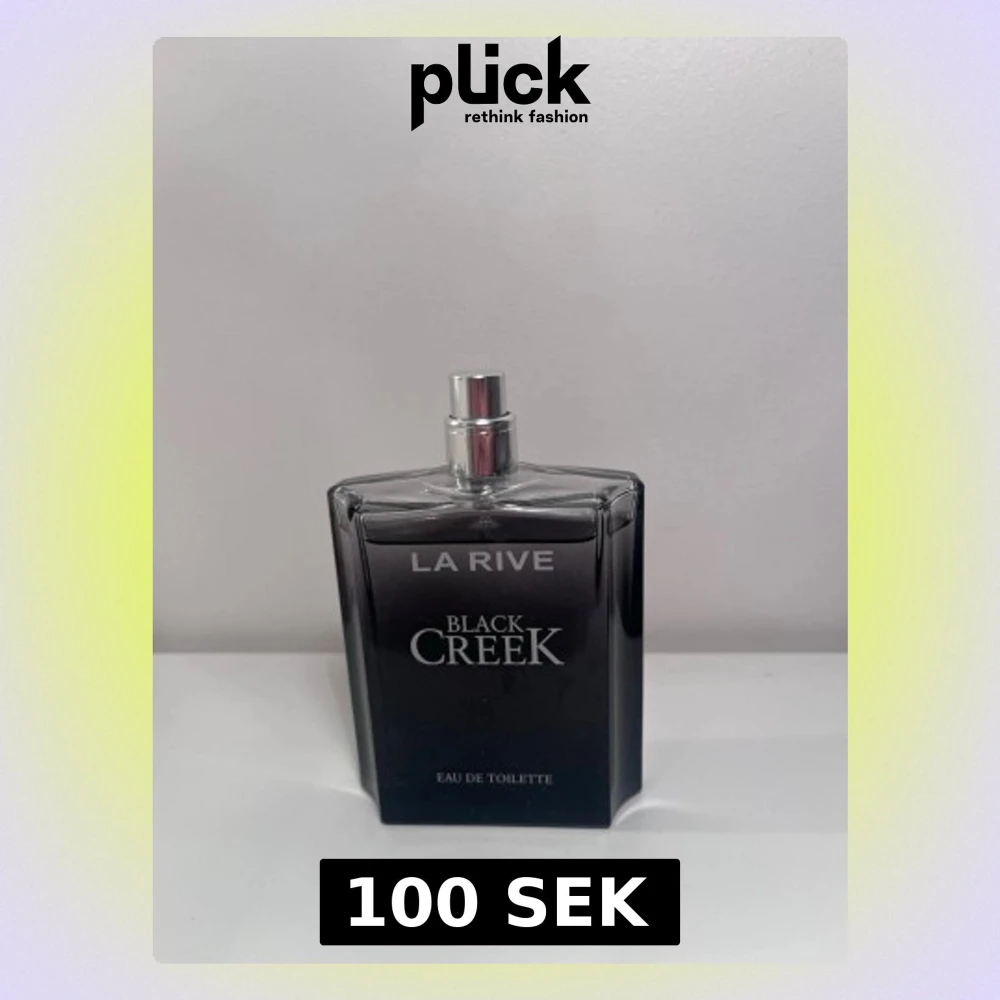 La Rive Black Creek Eau de Toilette med en stilren, svart glasflaska och silverfärgad spray. Flaskan har en modern, kantig form och text i vitt. Perfekt för dig som gillar eleganta och maskulina dofter. Endast använd få gånger