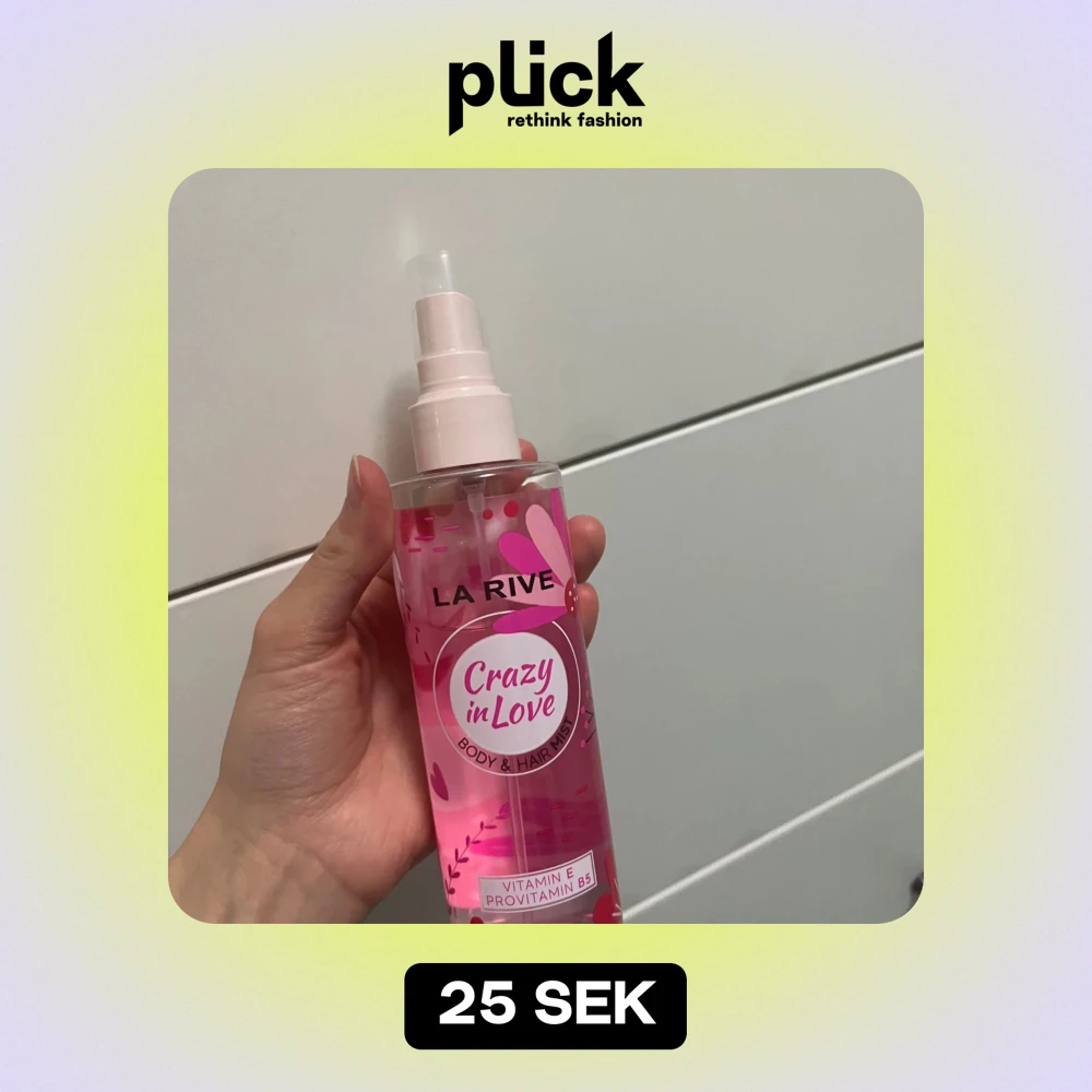 Säljer en fräsch och blommig body & hair mist från La Rive. Flaskan är genomskinlig med rosa vätska. Perfekt för att fräscha upp sig under dagen med en doft av kärlek och energi. Innehåller vitamin E och provitamin B5 för extra vård. Ca 85% återstår.
