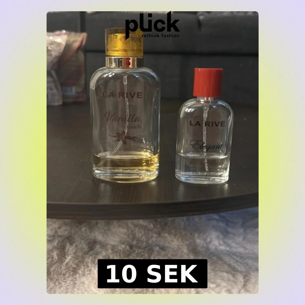 Säljer två fräscha parfymer från La Rive: Vanilla Touch och Elegant. Perfekta för dig som vill testa nya dofter till ett bra pris. Båda är eau de parfum och kommer i snygga flaskor. Båda för 10 kr då jag bara vill bli av med de. Använd gärna bundlerabatterna💕