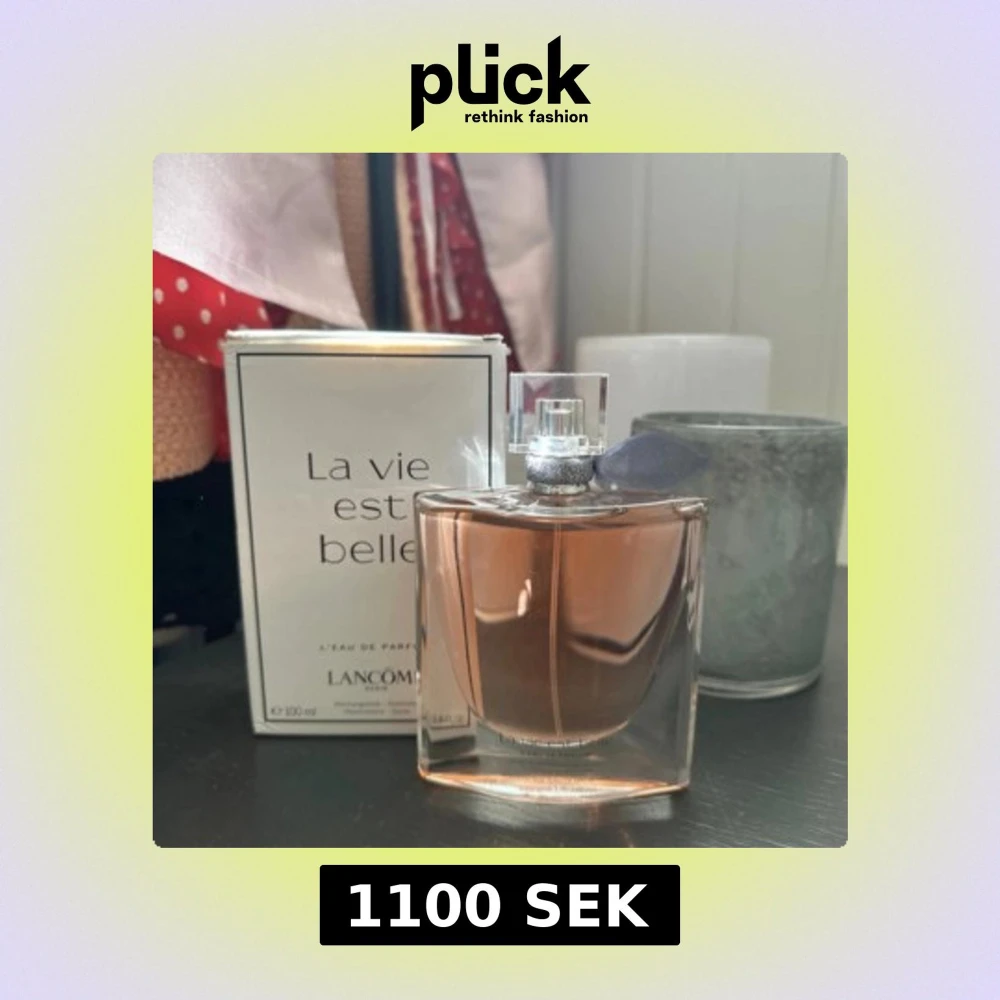 La vie est belle är en parfym som luktar extremt gott med toppnoterna päron och av svart vinbär. Hjärtnoter som jasmin, iris och apelsinblomma och basnoterna är vanilj, pralin, tonkaböna och patchouli. En mycket trendig parfym som passar alla och alla tillfällen såsom utgång och vardagligt. Den är endast provad med bara två sprut vilket gjorde att jag inte kunde lämna tillbaka den därav så säljer jag den! Original pris för 100 ml 1600 kr! Mitt pris 1100 kr. Vid snabb affär kan priset diskuteras