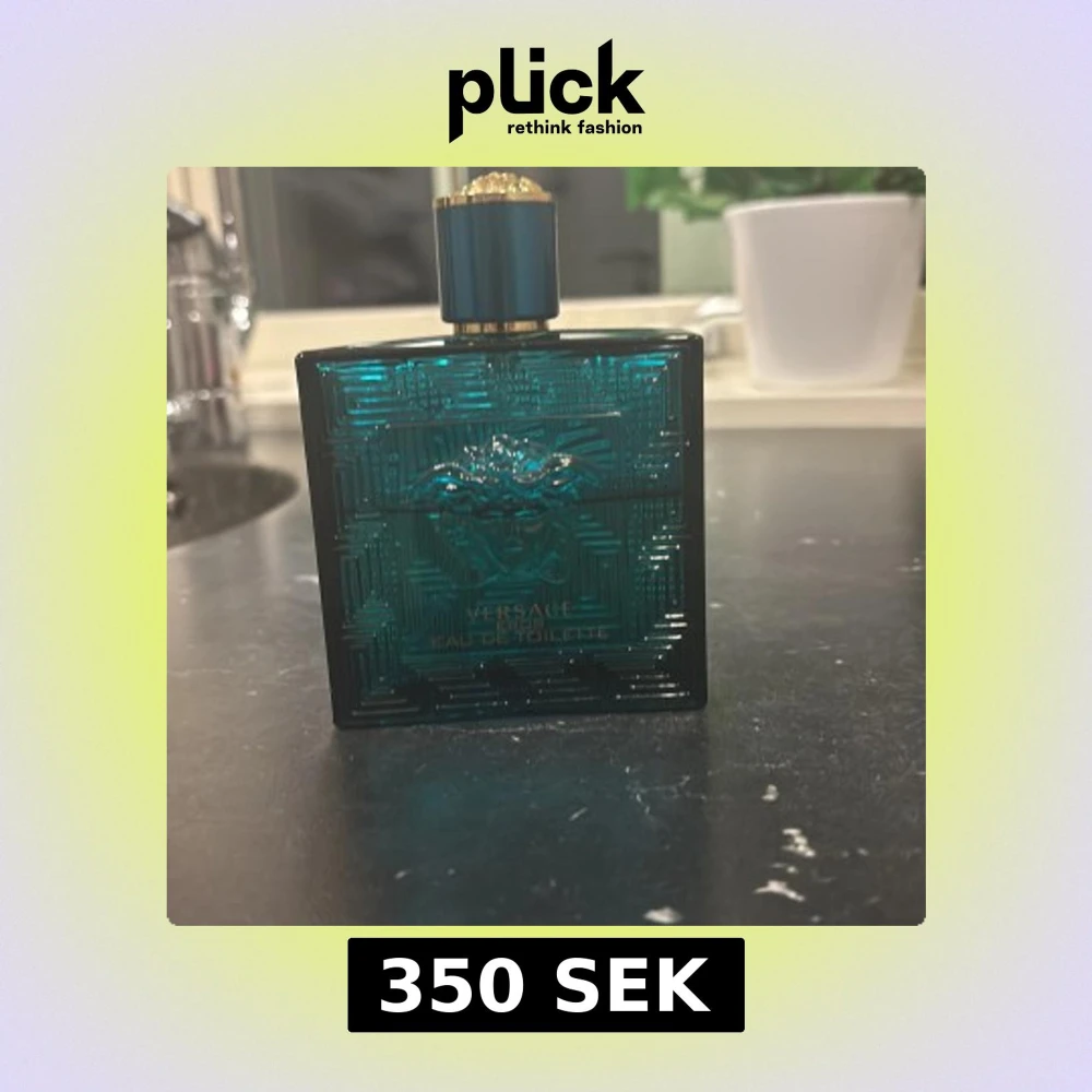 Elegant flaska i mörkgrön glas med Versaces ikoniska Medusa-motiv. Flaskan har en gyllene kork och rymmer 60/70 ml av doften. Perfekt för den som vill ha en lyxig och stilren parfymupplevelse.