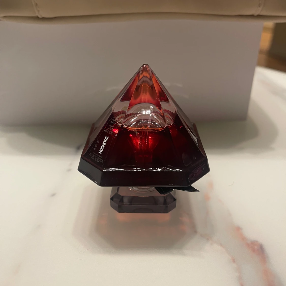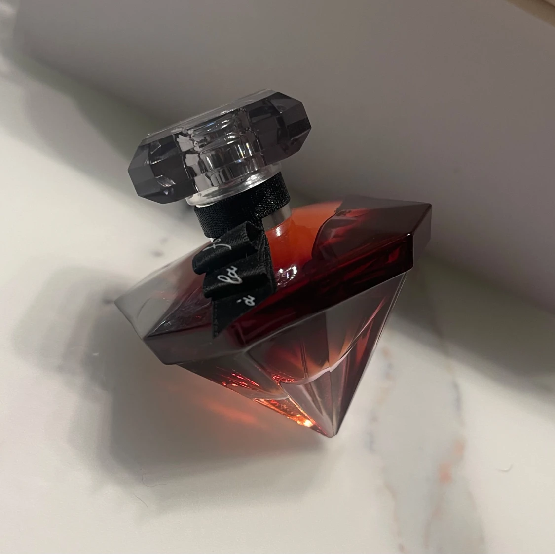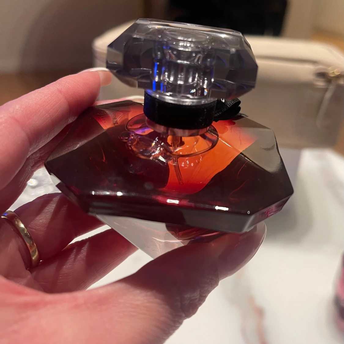 Knappt använd parfym från lancome på 30ml. Se bilder för jämförelse när man har flaskan upprätt samt upp och ner för att se utfyllnaden av parfymen som är kvar.