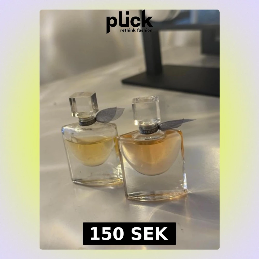 Två små flaskor Lancôme parfym, båda med dekorativ rosett vid halsen. Varje flaska innehåller 4 ml vardera (0.13 fl.oz) Eau de Parfum. Perfekt storlek för väskan eller resan. Den ena är lite mer använd, säljes tsm för 150kr.