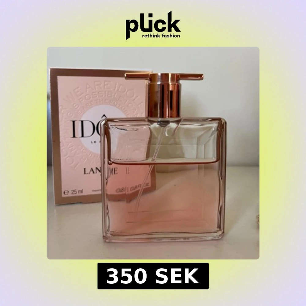 Parfym från Lancôme, Idôle EdP. Snygg och modern flaska, perfekt storlek på 25 ml att ta med i väskan. Toppnoter av bergamott och päron, hjärta med ros och jasmin, basnoter med vanilj och mysk. Använd ca 1/3, se bilden.
