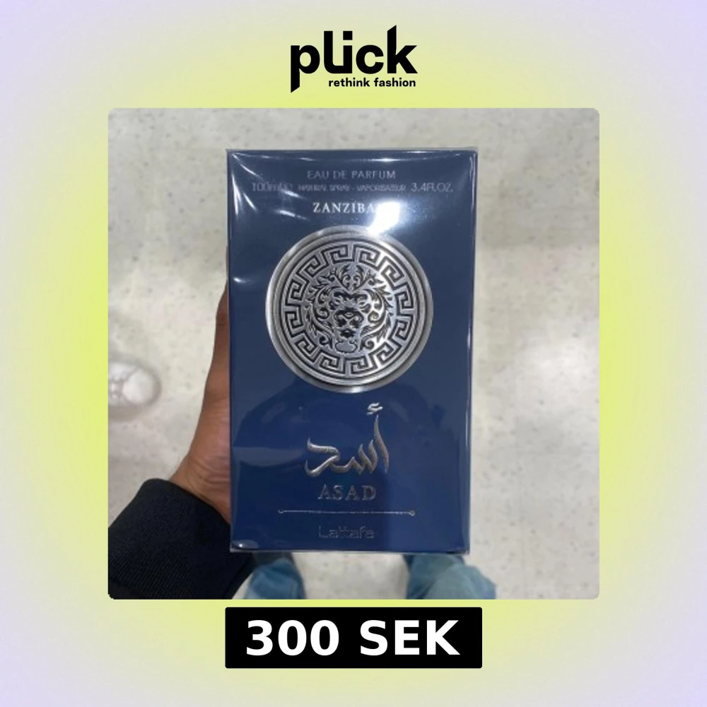 Parfymen Asad Zanzibar från Lattafa i en elegant mörkblå förpackning med silverdetaljer och orientaliskt mönster. Eau de Parfum, 100 ml. Doften är inspirerad av Zanzibar och passar dig som gillar exklusiva och kryddiga parfymer.