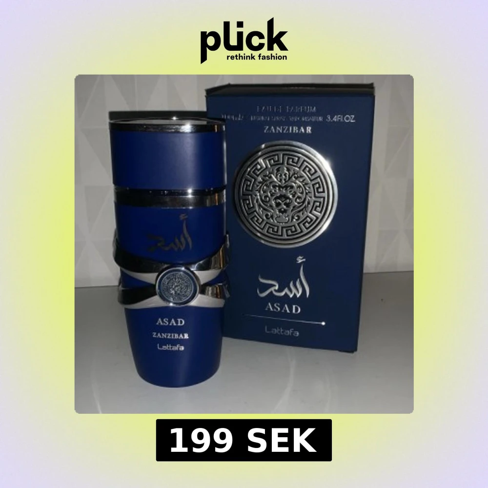 Lattafa Asad Zanzibar är en parfym i en stilren, djupblå flaska med silverdetaljer och orientaliskt mönster. Flaskan har en robust, modern design och levereras i en matchande blå kartong med silverlejon och arabiska inslag. Perfekt för dig som gillar exklusiva dofter. 95ml/100ml