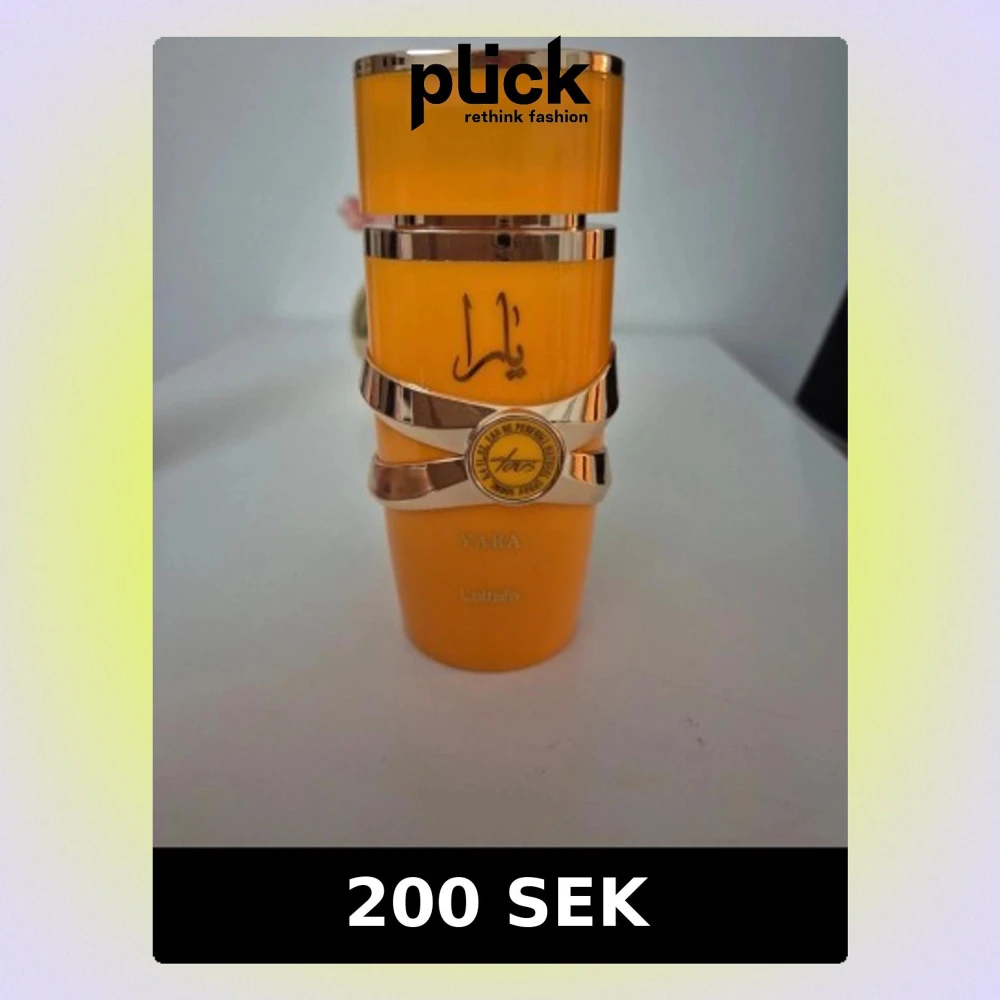 Trendig parfym med unik design från Lattafa. Flaskan har en cool orange färg och detaljer i guld. Perfekt för dig som vill sticka ut med din doftsamling. Namnet Yara syns tydligt på flaskan.