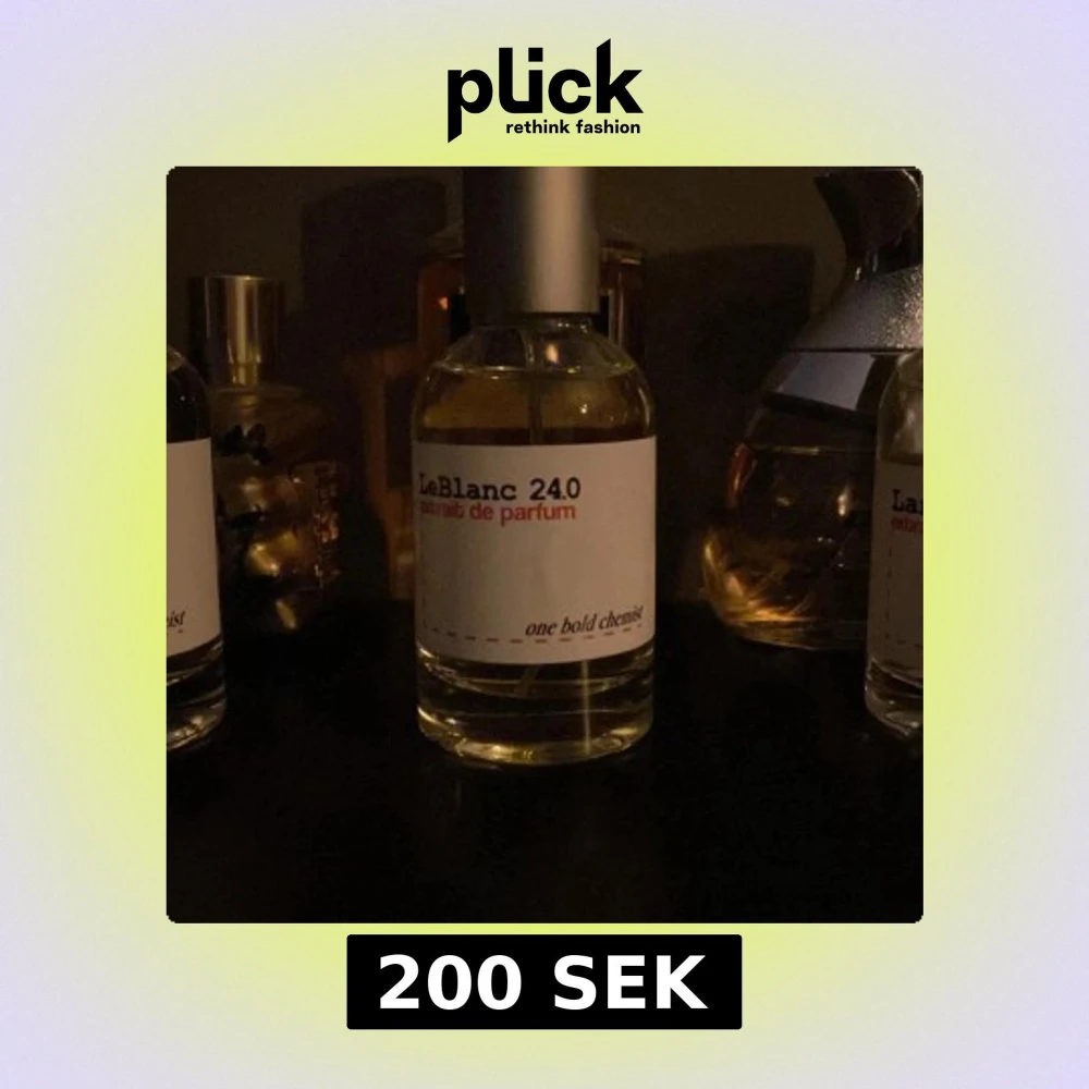 Elegant och sofistikerad parfym från LeBlanc med en minimalistisk design. Flaskan är genomskinlig med en enkel vit etikett och svart text. Perfekt för den som söker en unik doftupplevelse.