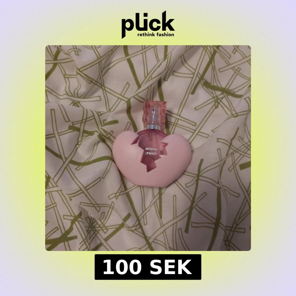 Säljer en söt parfym från Ariana Grande i en ljusrosa hjärtformad flaska med ett sprucket hjärtdesign och rosa transparent kork. Perfekt för dig som gillar unika och lekfulla flaskor.