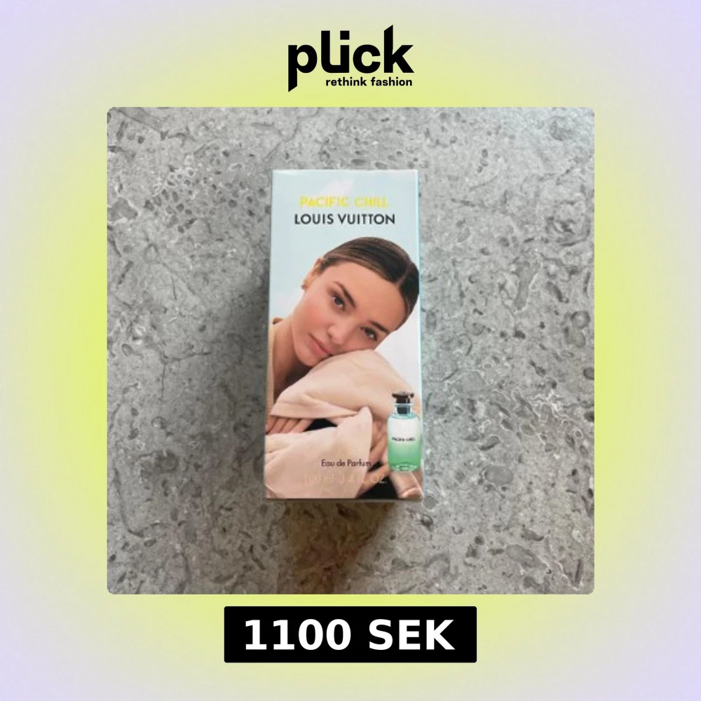 Lyxig parfym från Louis Vuitton, Pacific Chill Eau de Parfum i 100 ml flaska. Förpackningen är ljusblå med motiv och flaskan har en fräsch, ljusgrön färg. Perfekt för dig som gillar exklusiva dofter och snygg design.