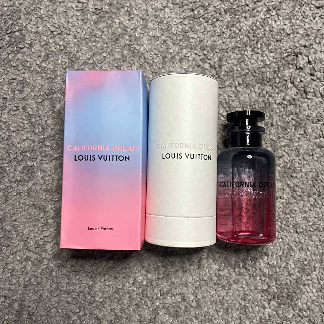 Louis Vuitton California Dream - 100ml. Doftnoter: • Topp: Friska citrus- och grapefruktnoter 🍋 • Hjärta: Jasmin och apelsinblomma 🌸 • Bas: Mysk och cederträ 🌲 • Storlek: 100ml • Skick: Väldigt fint skick ✅ Obs: Osäker på äkthet, därav det låga priset. Köpt via Plick – säljaren sa att det var äkta och nämnde att kvitto fanns, men jag fick aldrig det. Men antagligen inte äkta!