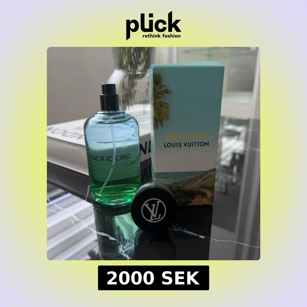 Fräsch parfym från Louis Vuitton i doften Pacific Chill. Flaskan är genomskinlig med grön botten och svart lock med LV-logga. Kommer i originalkartong med tropiskt motiv. Lyxig och modern design, perfekt för dig som gillar exklusiva dofter.