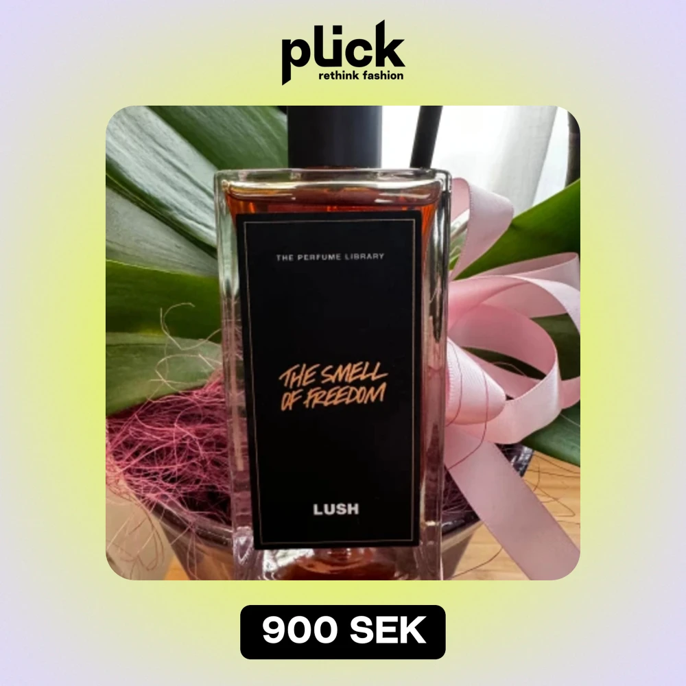 En parfym från Lush med namnet 'The Smell of Freedom'. Den är handblandad med fina eteriska oljor och innehåller ingredienser som sandelträ, oudh och citrongräs. Doften är rik och jordig med en rökig ton, vilket gör den både lockande och djup. Flaskan är genomskinlig med en svart etikett och rymmer 100 ml.