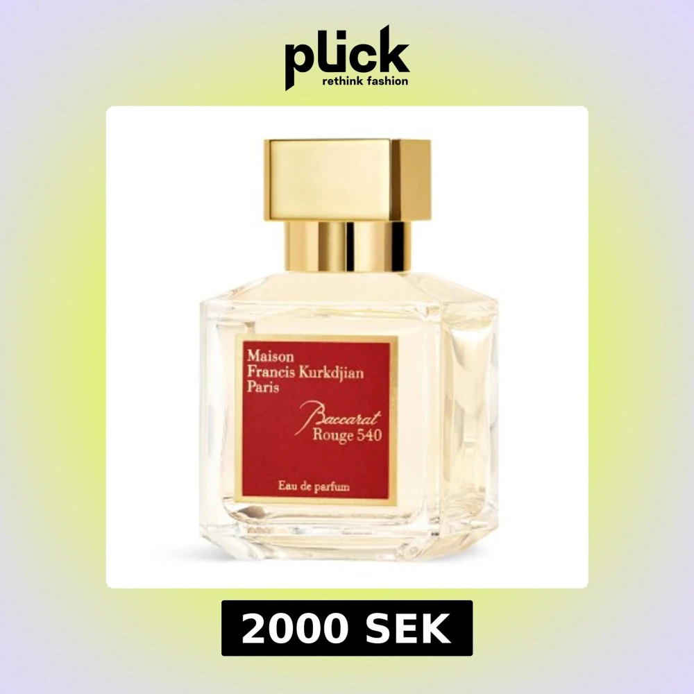 Exklusiv parfym från Maison Francis Kurkdjian, Baccarat Rouge 540. Flaskan har en elegant design med en fyrkantig form och en gyllene kork. Den röda etiketten ger en lyxig känsla. Perfekt för den som söker en sofistikerad doftupplevelse.