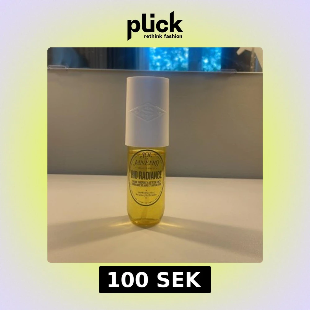 Fräsch och tropisk body mist från Sol de Janeiro, Rio Radiance. 💛Flaskan är genomskinlig och gul med en glitter tuch! Den är lite använd men ändå mycket kvar.🤗Doften har inslag av solig tuberos och kokosmjölk. Perfekt för dig som älskar somriga, exotiska dofter.🩷🌸