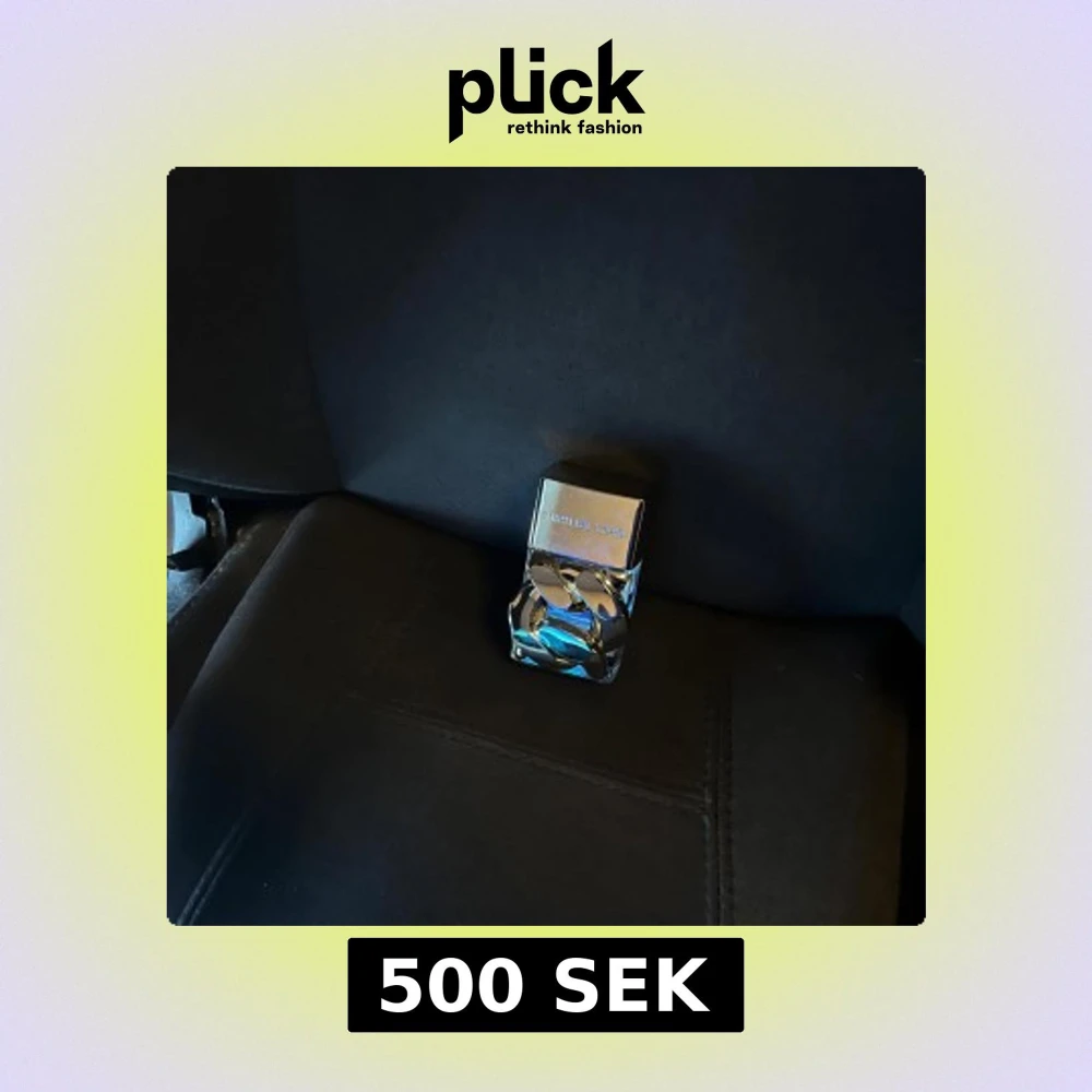 Aldrig använd. Snygg parfymflaska från Michael Kors med spegelblankt silverlock och coolt kedjemönster i metall runt glasflaskan. Flaskan är genomskinlig och har en modern, lyxig design som verkligen sticker ut i badrumshyllan.