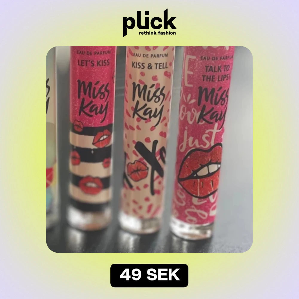 Fyra stycken Miss Kay-parfymer. Pool Party Blossom Bliss Funday Let’s Kiss Kiss & Tell Talk to the Lips Alla endast taget ett sprut utom Pool party som är tagen några millimeter. 49:-/st eller paketpris, bara att skriva! 🤗