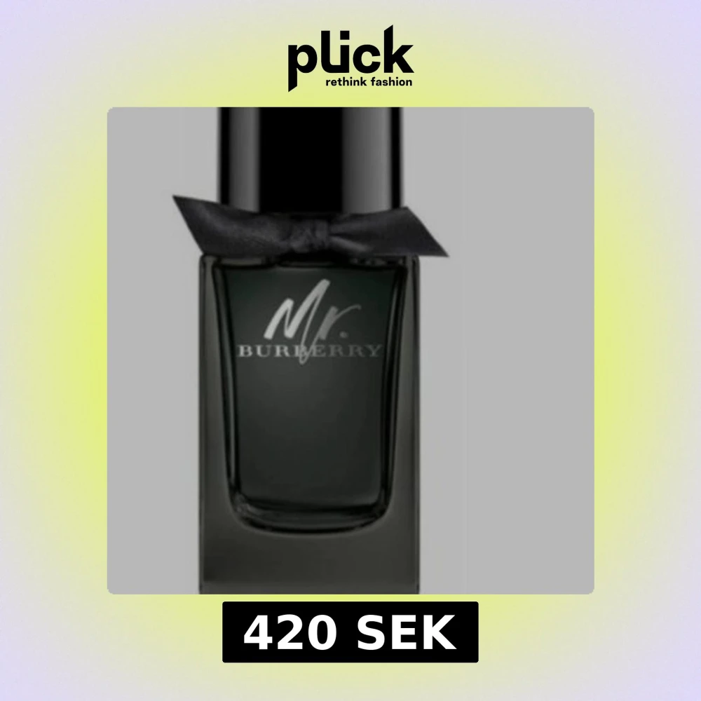 Mr. Burberry är en elegant herrparfym i en stilren, mörkgrå glasflaska med svart lock och en svart rosett runt halsen. Flaskan har en modern, maskulin design och loggan är tryckt i vitt på framsidan. Perfekt för dig som gillar exklusiva dofter.