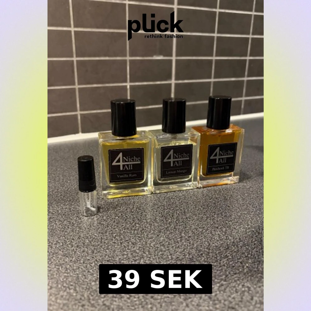 Niche4All Lemon Mango, Patchouli TB & Vanilla Rum, tre unika dofter- fräsch och tropisk mango & citrus, djup kryddig patchouli samt söt och varm vanilj med rom. 📦 Prov/test på 2 ml