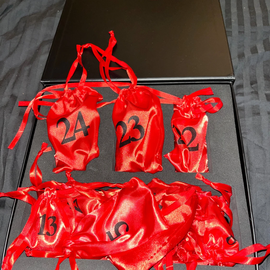 Upptäck 24 överraskningar med denna exklusiva adventskalender från One Bold Chemist. Varje röd påse innehåller en unik doftupplevelse – perfekt för dig som vill testa nya parfymer på ett roligt sätt.
