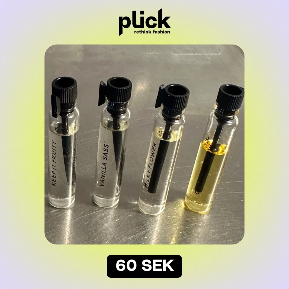 Köpta för 45 kr var, 2 ml. Alla luktar gudomliga men jag har redan hittat min favorit och köpt en större flaska. Du får alla 4 tillsammans: - Milky Flower - Keep it fruity - Carashmellow - Vanilla Sass
