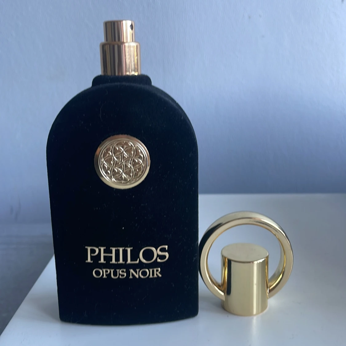 Snygg och stilren parfymflaska med gulddetaljer från Philos. Perfekt för dig som vill sticka ut med en exklusiv look. Namnet Opus Noir ger en mystisk och modern.