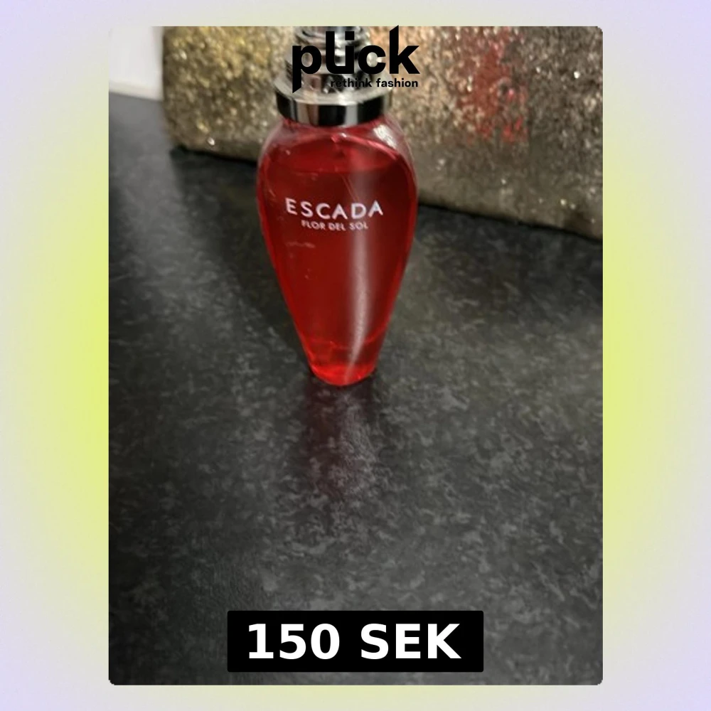 Färgstark parfym från Escada med namnet Flor Del Sol. Perfekt för dig som vill sticka ut och addera en energisk touch till din stil. Snygg röd flaska som drar blickarna till sig. 90% kvar. Kork saknas