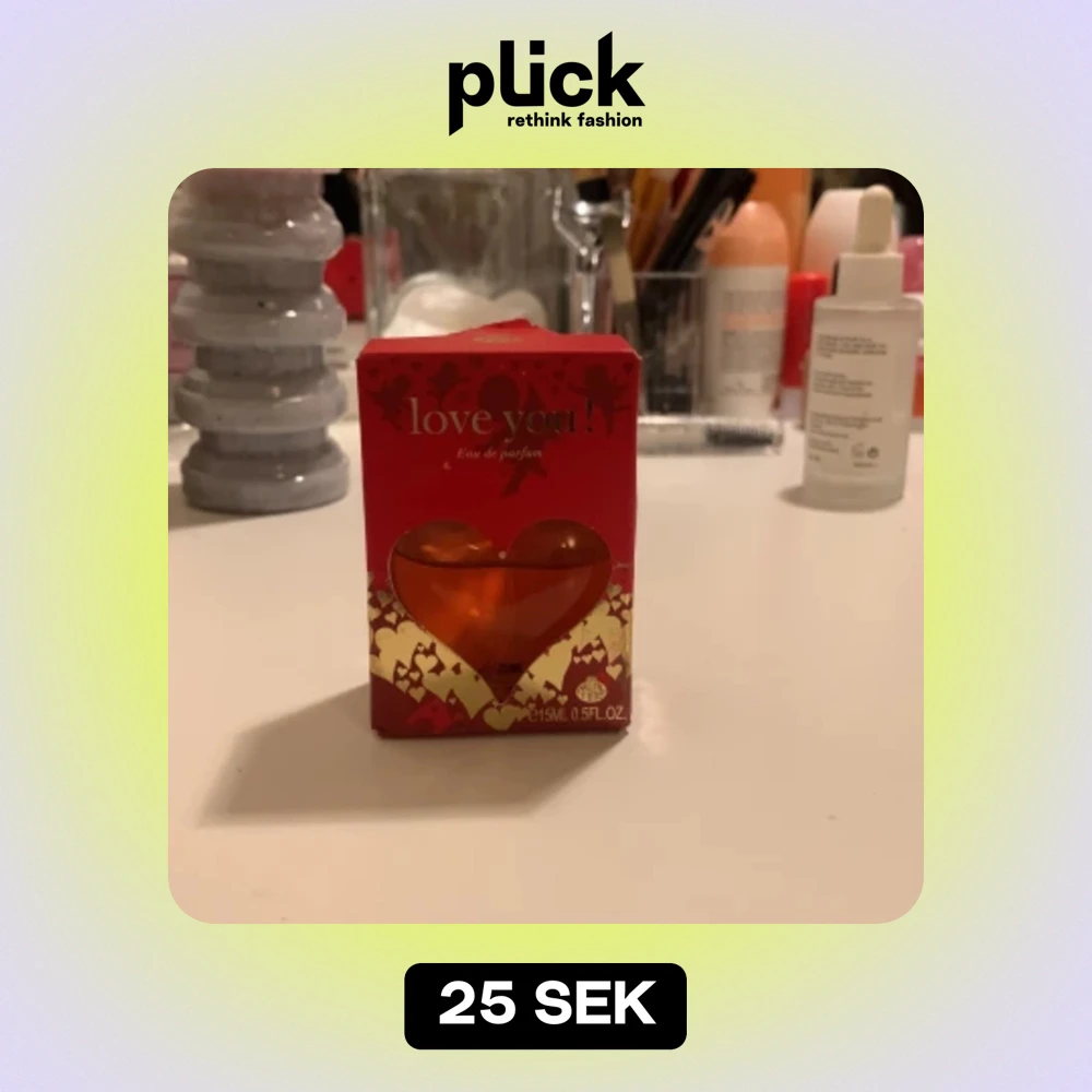 Säljer en söt och romantisk parfym i en hjärtformad flaska. Flaskan är genomskinlig med en röd hjärtformad kork och innehåller en orange doftvätska. Perfekt present till någon du tycker om eller för att skämma bort dig själv. Flaskan rymmer 45 ml.
