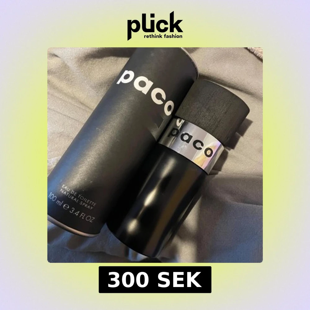 Säljer en stilren och modern Eau de Toilette från Paco. Flaskan är svart med en silverdetalj och kommer i en matchande svart förpackning. Perfekt för den som gillar en tidlös doft.