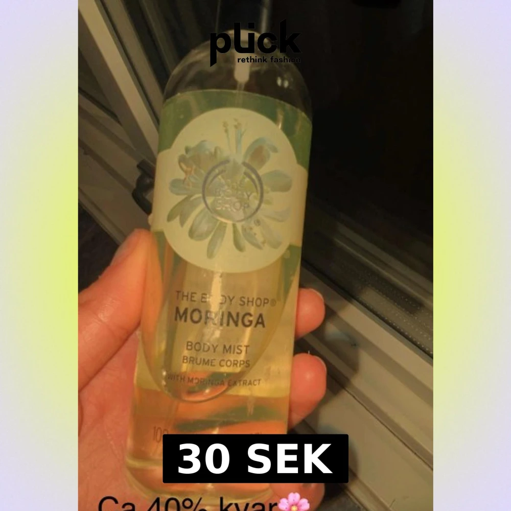Body mist i doften Moringa frĂ„n the body shop, ca 40% kvar. Doftar otroligt gottđ€