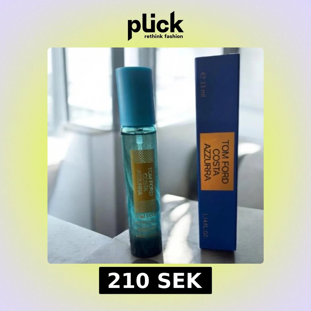 Fräsch och lyxig parfym från Tom Ford, Costa Azzurra Eau de Parfum i 33 ml sprayflaska. Flaskan är smal och cylinderformad i blått glas med blått plastlock och guldiga detaljer. Kommer i matchande blå kartong med guldtext. Passar utmärkt för både män och kvinnor.