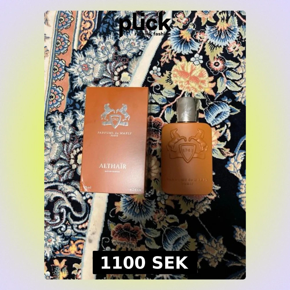 Exklusiv parfym från Parfums de Marly, Althaïr, i en snygg mattbrun flaska med silverfärgad kork. Flaskan rymmer 125 ml och har märkets klassiska emblem ingraverat. Kommer i matchande brun kartong. Perfekt för dig som gillar lyxiga dofter.